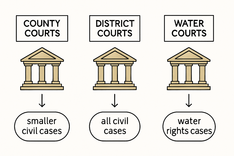 The judicial system in Colorado features three primary courts that handle civil matters: